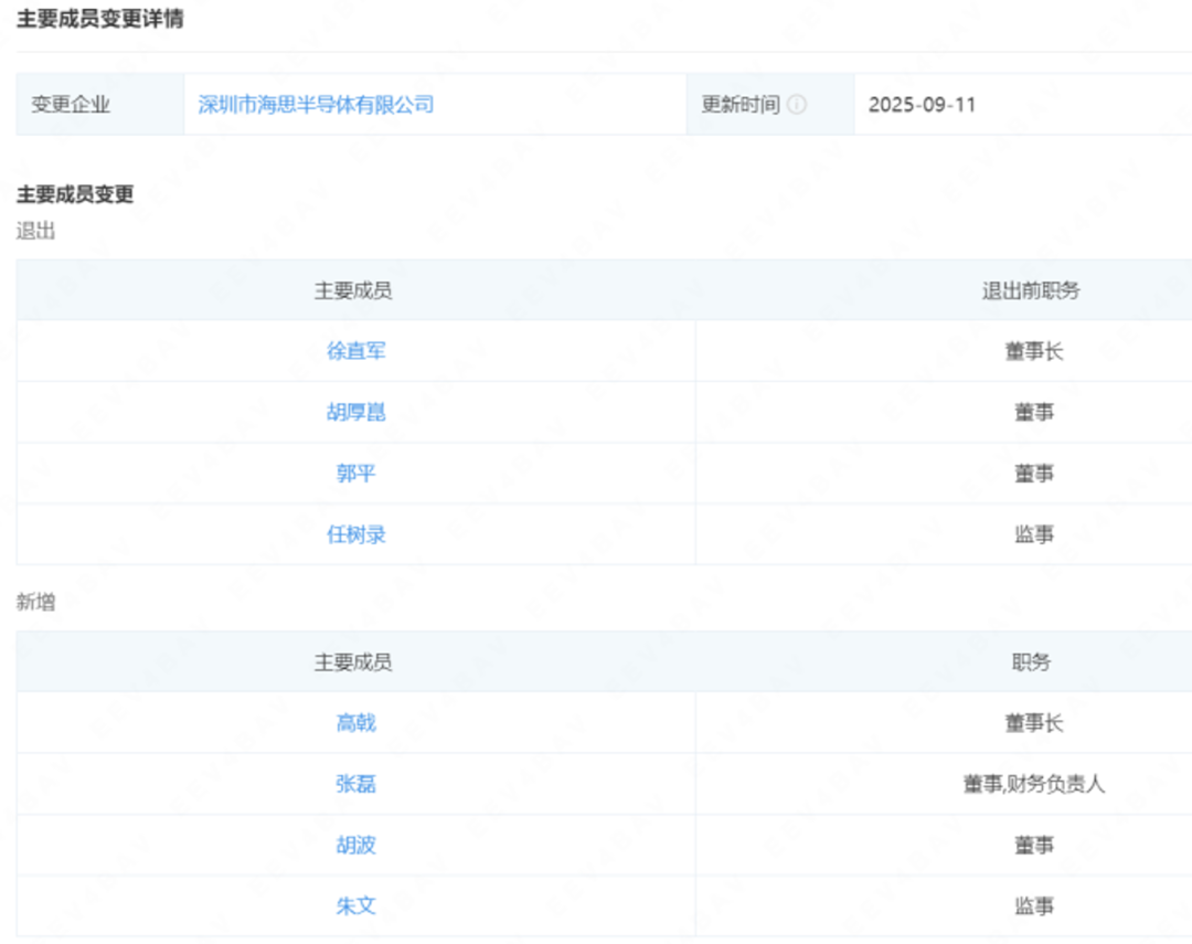 近期新浪網等中國媒體從天眼查的工商資訊變更中發現,華為旗下的海思半導體原董事長暨關鍵人物徐直軍卸任,由原本海思總經理高戟接任。不僅如此,多位華為的高階主管退出海思半導體董事會,包括華為的輪值董事長胡厚崑,以及曾經擔任華為輪值董事長的郭平等。